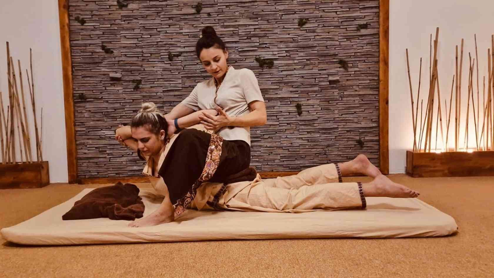 • Tehnici de masaj Thailandez: folosirea palmelor, a degetelor, a coatelor, a picioarelor și a stretching-ului pasiv.