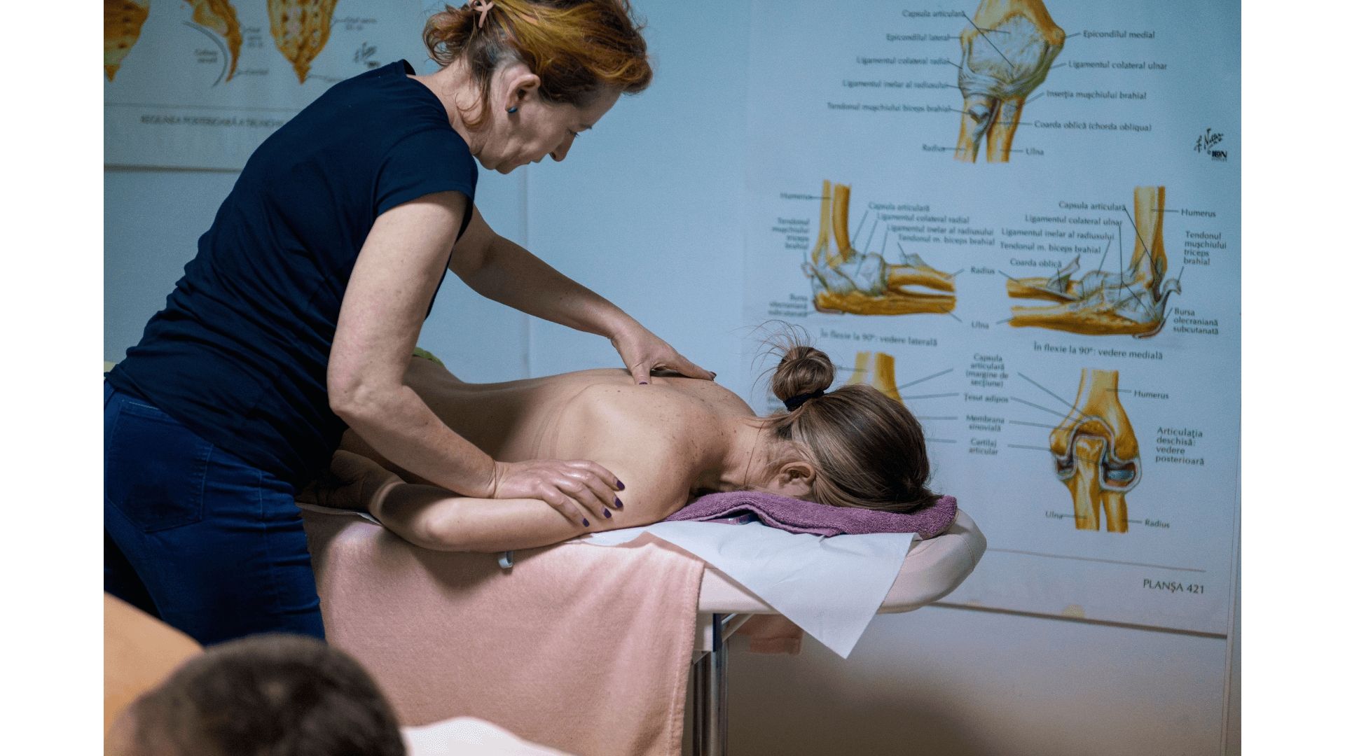 - Tehnici privind realizarea masajului terapeutic si a gimnasticii de recuperare pentru afectiuni (spondiloza cervicala si dorsala, lombosciatica, coxatroza, gonatroza, artroza gleznei, cifoza, lordoza, scolioza, contracturi musculare, intinderi musculare, tendinite, etc).